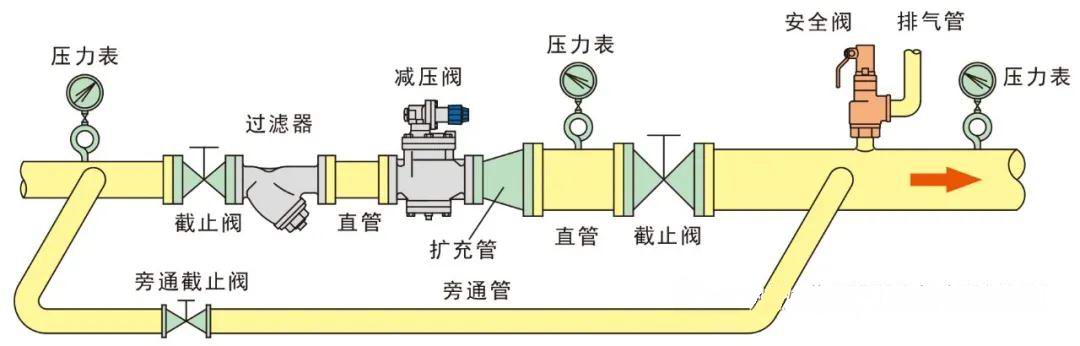 4、如需在減壓閥出口側(cè)安裝自動控制閥,需與減壓閥保持一定距離(調(diào)節(jié)型1米以上,開關(guān)型2米以上)。