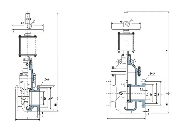 1. (Class150~900/PN1.0~16.0MPa,工作溫度 -29~121℃)石油、天然氣輸送管線。帶導(dǎo)流孔的平板閘閥還便于清掃管線。